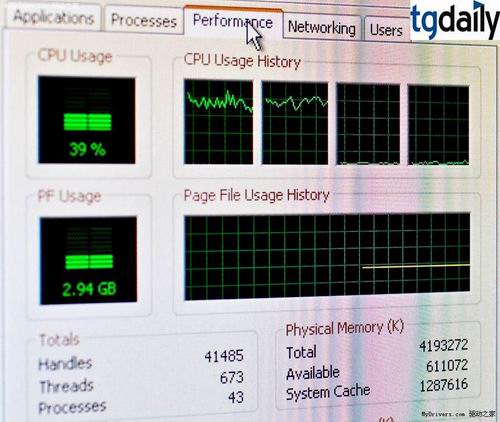 经过一番设置后开始启动游戏,13个游戏窗口在36秒内陆续打开,不过由于帐号没这么多,现场只登陆了其中的5个。从任务管理器看,总的CPU占用率稳定在40-45%(不过两个核心空闲),内存已经不太够用,Windows开始使用临时交换文件,但对固态存储设备来说,这不成问题,不会出现机械硬盘那样指示灯狂闪的场面。