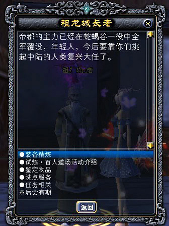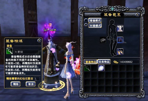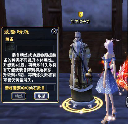 在《完美世界》里,负责精炼的NPC有很多,“祖龙城长老”就是其中的一位。找到相应的NPC,玩家打开自己的“装备包裹”,并准备好需要精炼的装备和一定数量的幻仙石。