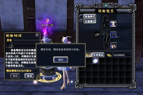 装备精练伴有一定的风险。精练失败,装备等级可能由精练前降到初始状态,也有可能消失。装备精练成功,属性也会在原来的基础上递增到另一个层次,对于渴望获得极品装备的玩家们来说,这个过程是无可避免的。