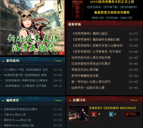 《洛奇英雄传》17173专区有着让人眼前一亮的设计,三大主角齐集一堂,你仿佛可以看到他们面对那黑暗世界中时那刚毅的眼神。这里有最及时的游戏公告,还有最贴心的游戏秘籍,更有快速提升自己的方法,当然,韩服和美服的最新消息也是不可缺少的哦!