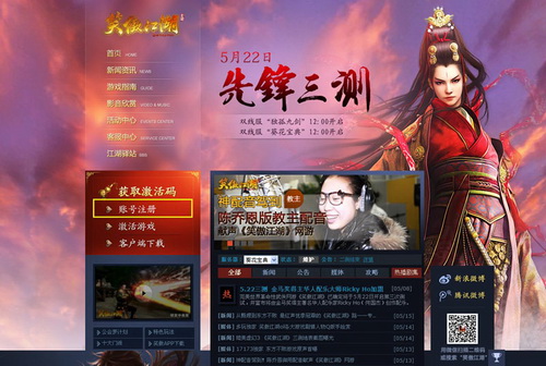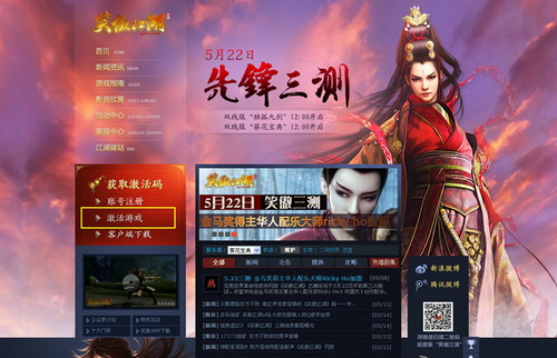 第一步,直接进入《笑傲江湖》官方网站:http://xa.wanmei.com/ ,点击左方【激活游戏】进入激活通道