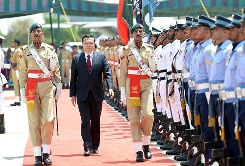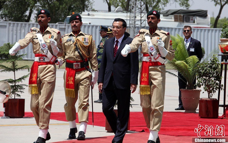 5月22日,中国国务院总理**乘专机抵达伊斯兰堡,开始对巴基斯坦进行正式访问。巴基斯坦总统扎尔达里、总理霍索在机场为**总理举行欢迎仪式。这是**总理检阅巴基斯坦三军仪仗队。新华社记者 马占成 摄