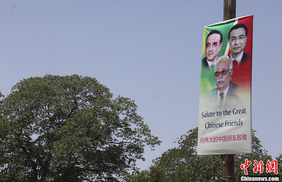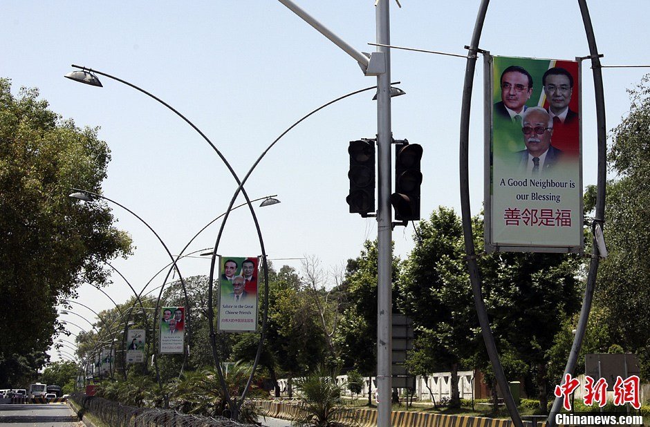 当地时间5月22日,中国国务院总理**乘专机抵达伊斯兰堡努尔·汉空军机场,开始对巴基斯坦进行正式访问。图为巴基斯坦街头挂起欢迎**访问的标语牌。中新网记者 郭金超 摄