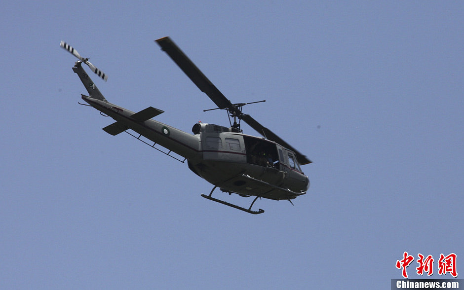 当地时间5月22日,中国国务院总理**乘专机抵达伊斯兰堡努尔·汉空军机场,开始对巴基斯坦进行正式访问。图为在从机场到下榻饭店的路上,巴基斯坦为**车队提供直升机护航。中新网记者 郭金超 摄