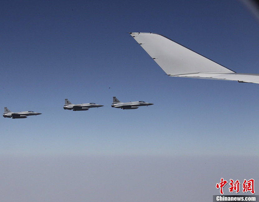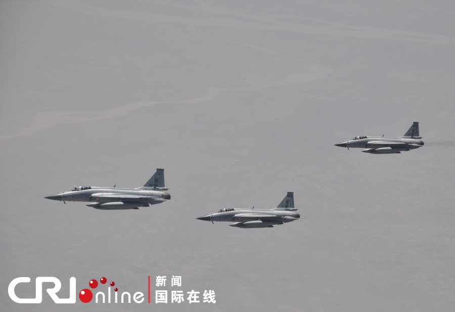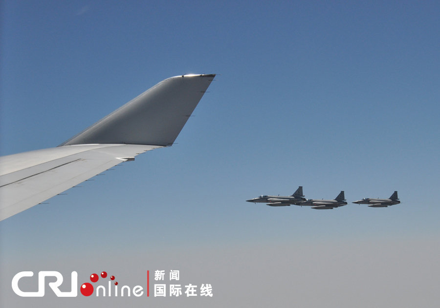 当地时间22日中午,**总理开始访问巴基斯坦。当专机飞临巴基斯坦领空,巴方出动6架枭龙战机为总理专机护航。翟磊 摄 图片来源:国际在线