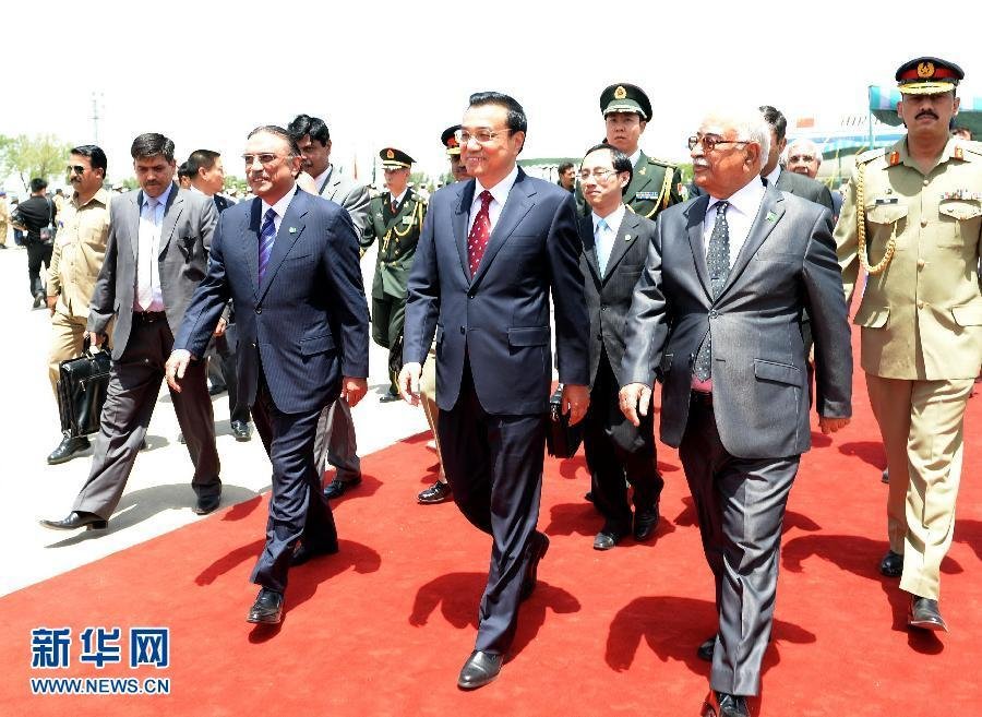 5月22日,中国国务院总理**乘专机抵达伊斯兰堡,开始对巴基斯坦进行正式访问。巴基斯坦总统扎尔达里、总理霍索到机场迎接。 新华社记者马占成 摄